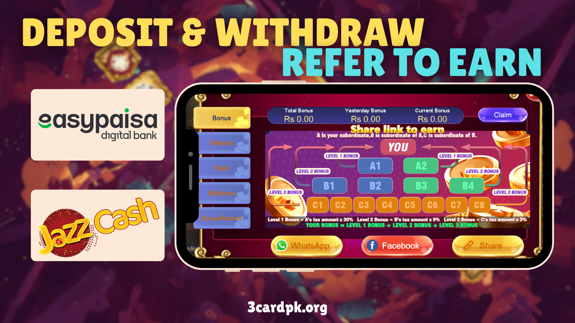 Before you withdraw money, make sure your 3 Card PK account is linked to a payment wallet. The app supports popular options like JazzCash and EasyPaisa, which are commonly used in Pakistan for quick and safe transactions.